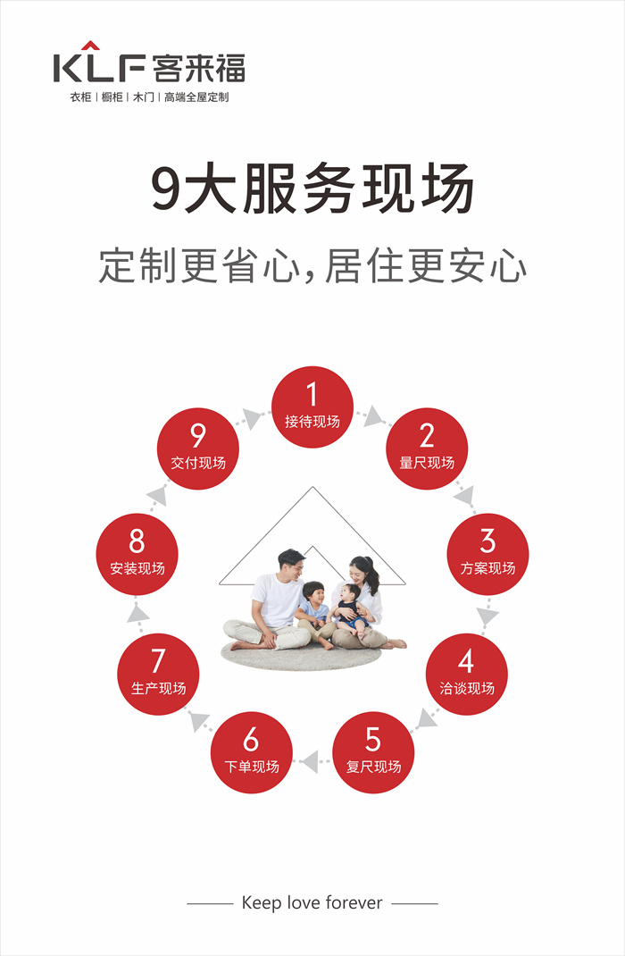 客來福家居扎根家居行業(yè)二十年,從單一家具產(chǎn)品到實(shí)現(xiàn)全屋定制,客來福用產(chǎn)品和服務(wù)說話,開辟了一條屬于自己的發(fā)展之路。在發(fā)展過程中客來福不忘初心,將“締造幸福家居生活,讓愛無界”作為企業(yè)愿景,為更多中國(guó)家庭定制幸福家居生活。