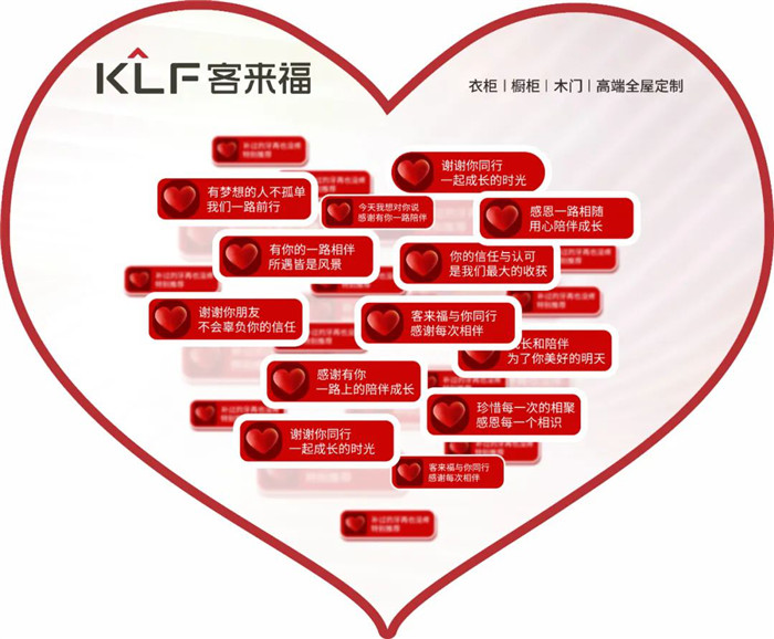 客來福(KLF)KeepLoveForever,寓意客來福至,讓愛無界!其中的“客”就是大家!客來福遵循“客戶是天,產(chǎn)品是命,品牌是魂”的企業(yè)價(jià)值觀,所以一直風(fēng)雨無阻的堅(jiān)持了17年感恩行動(dòng),為了就是讓大家感受到產(chǎn)品與服務(wù)帶來的幸福感,傳遞幸福,至福于家。