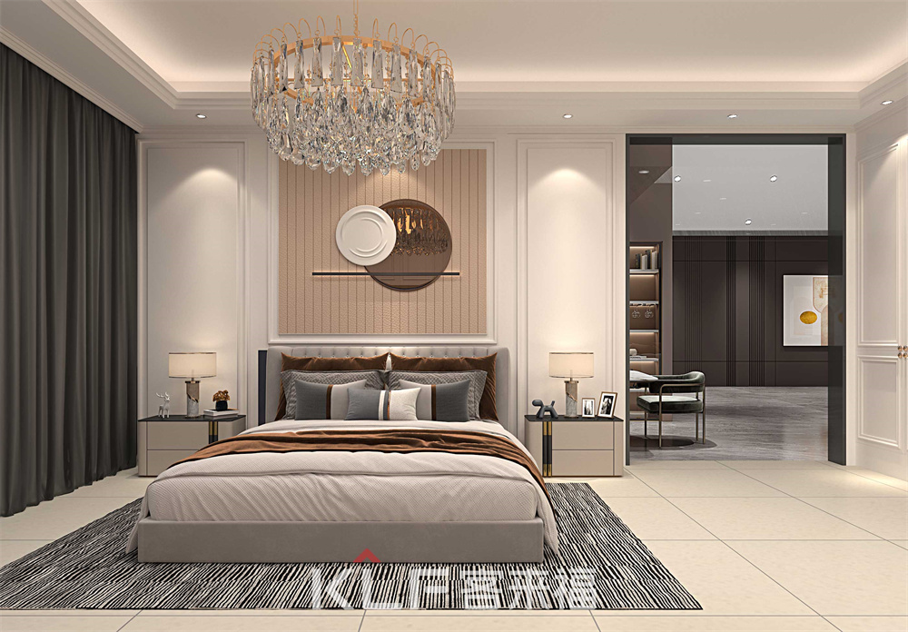 臥室的休息區(qū)和閱讀區(qū)相連,也是古典產品的經典搭配,除了隨處可見的線條裝飾,書柜的天地金屬框玻璃們也是混搭的重要原色,感應燈光讓你開門后有漸變漸亮,更加人性化。