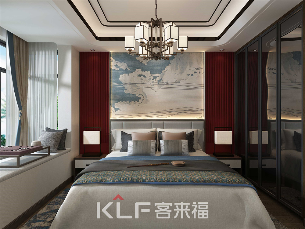 中式雅韻的背景墻,搭配古風(fēng)吊燈,展示睡眠的神圣感。側(cè)邊衣柜采用透明推拉門,既節(jié)省臥室空間,也讓衣物的挑選更容易。幾平米的飄窗,成為臥室的主要采光源,放上抱枕,擺上棋盤,這里就能成為消磨時(shí)光的寶地。