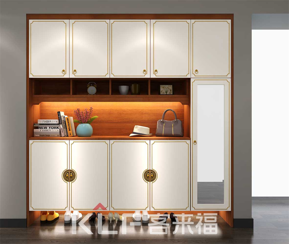 波爾多紅橡搭配米白色面飾,透露出新中式的古典與優(yōu)雅。內(nèi)凹圓角描金線條,彰顯盛世華貴之風(fēng)骨。對稱式布局,于方寸之間盡顯天地之寬,呈現(xiàn)出中華傳統(tǒng)文化的均衡之美,和諧祥瑞。環(huán)形福字拉手,獨具東方韻味,自得風(fēng)流。